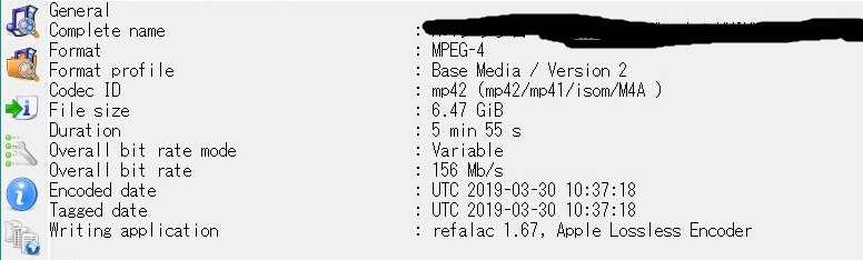 試しに4分16秒の動画(1080p)を先のシングルパス-固定量子化量の量子化0でエンコードすると