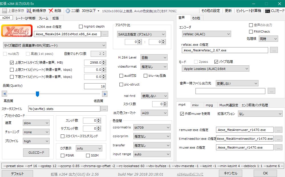 ちなみにニコニコさんの拡張 x264 出力 (GUI) プラグインのwikiには