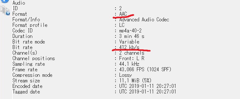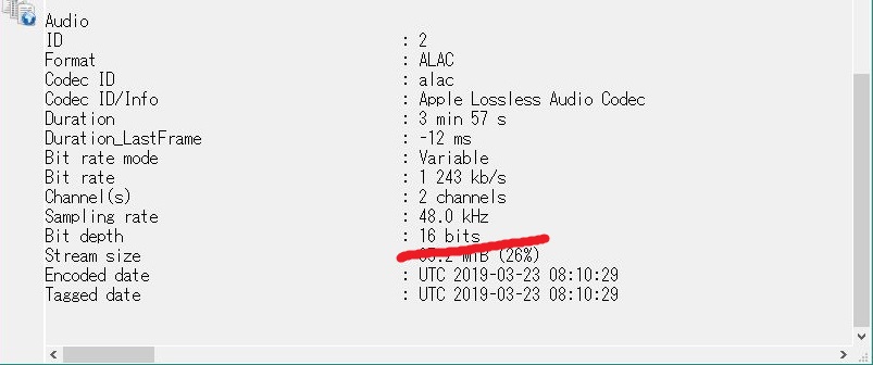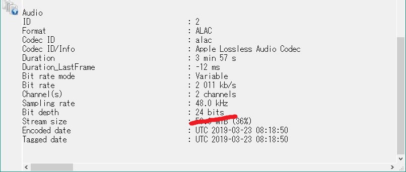 ※ALACと違うデータを使っているのでDuration(音源時間)やらが違うのはスルーで。