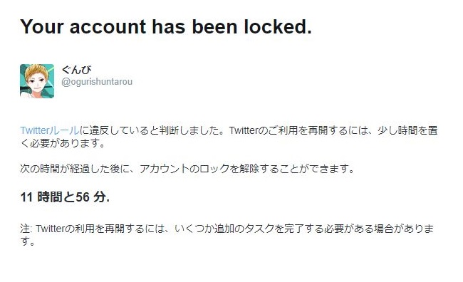 今日(2019/3/30)、私のツイッターがアカウントロックされました。。。